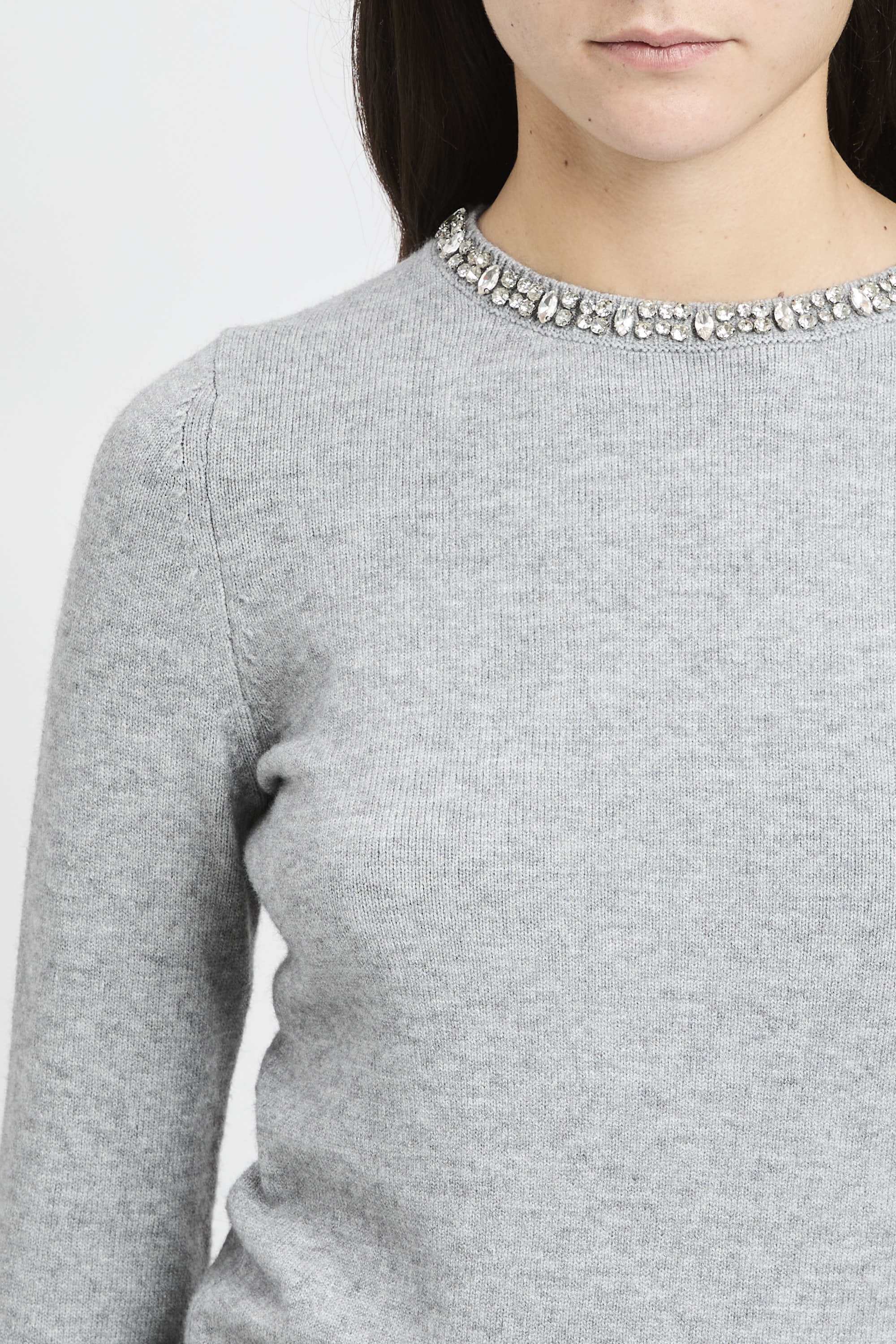 Brillante ma essenziale, la maglia girocollo Kaos in viscosa valorizza i look di stagione con un dettaglio gioiello discreto: gli strass applicati sul girocollo illuminano il viso senza eccessi, mentre collo, polsini e fondo a costine definiscono una linea ordinata e contemporanea.