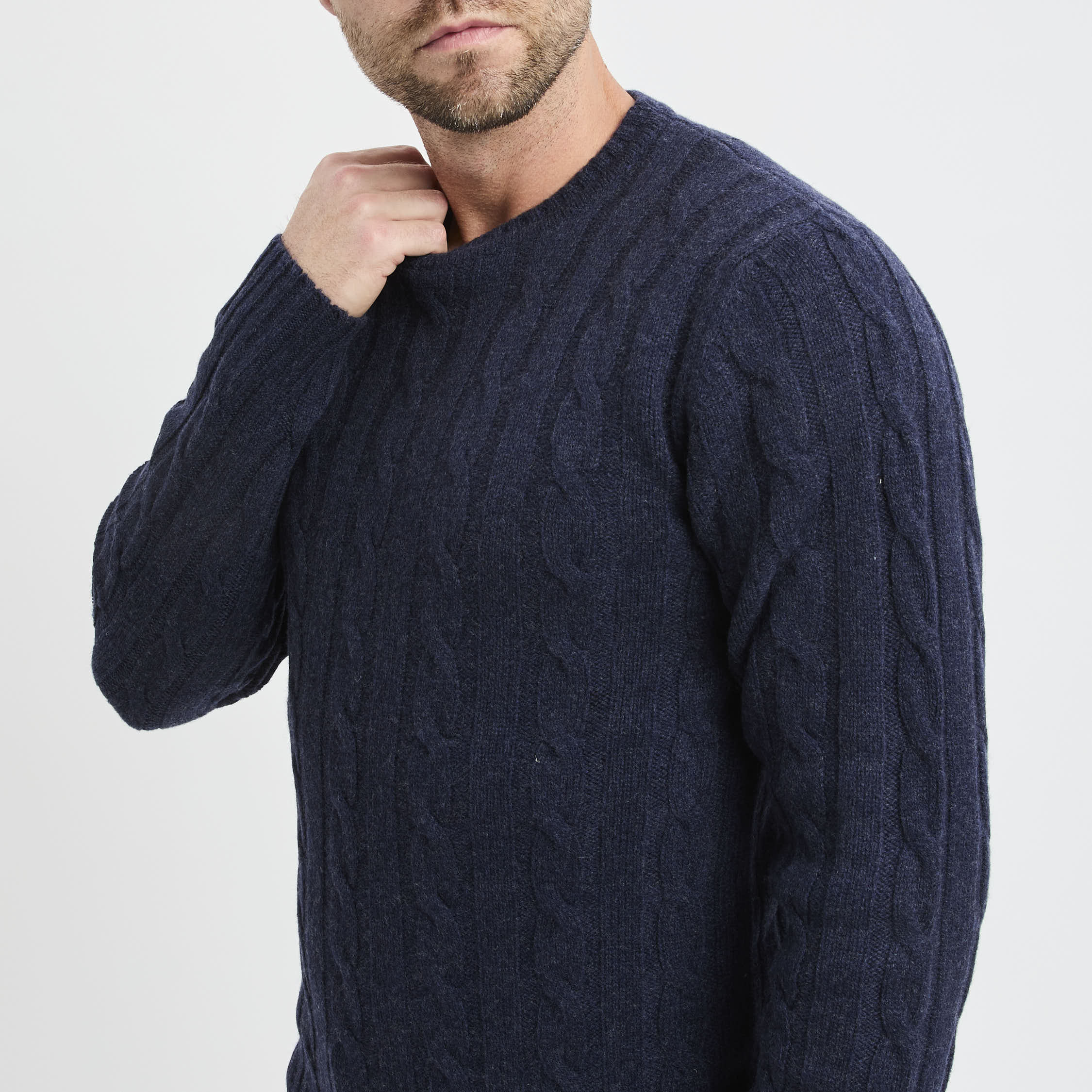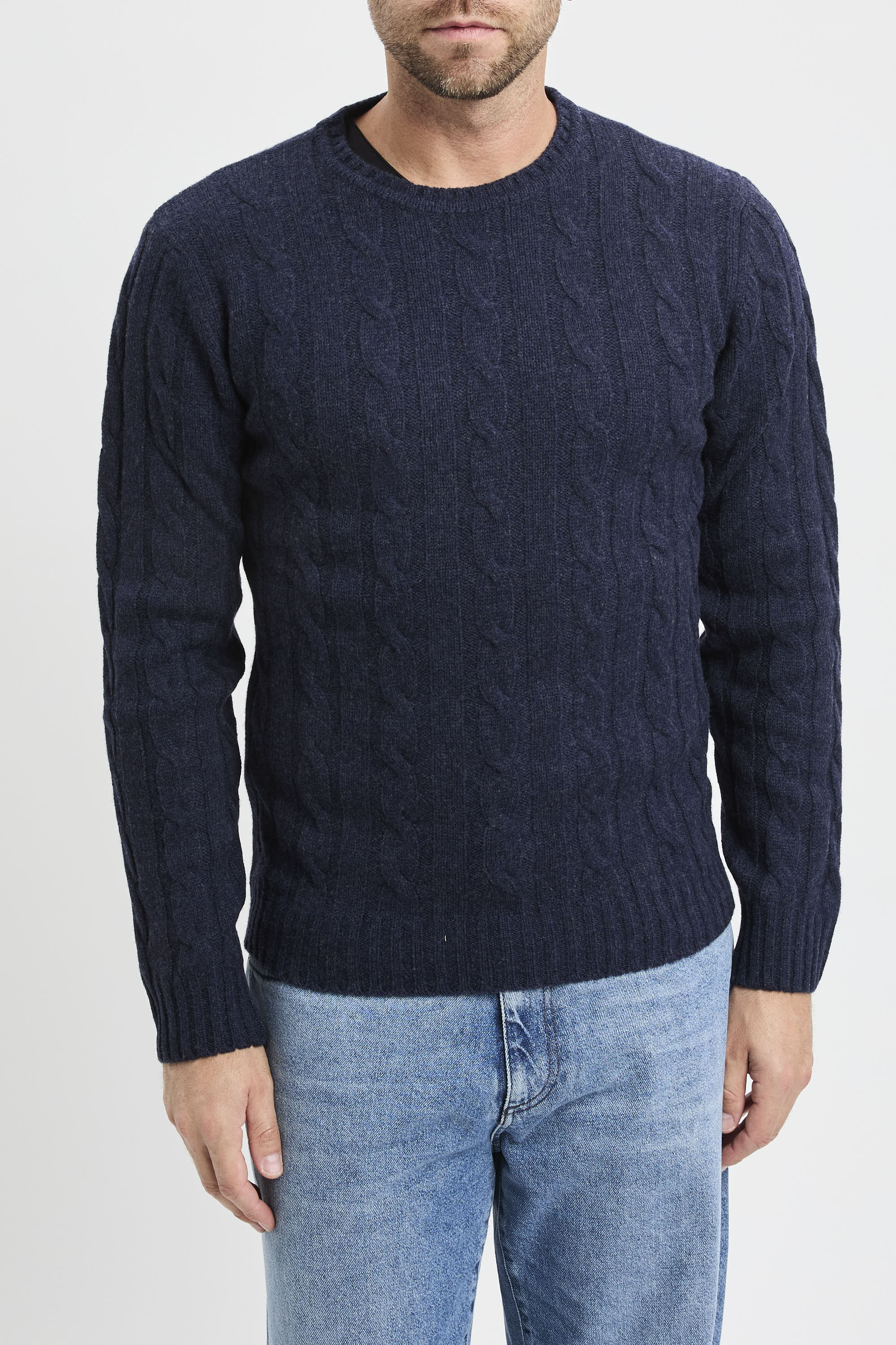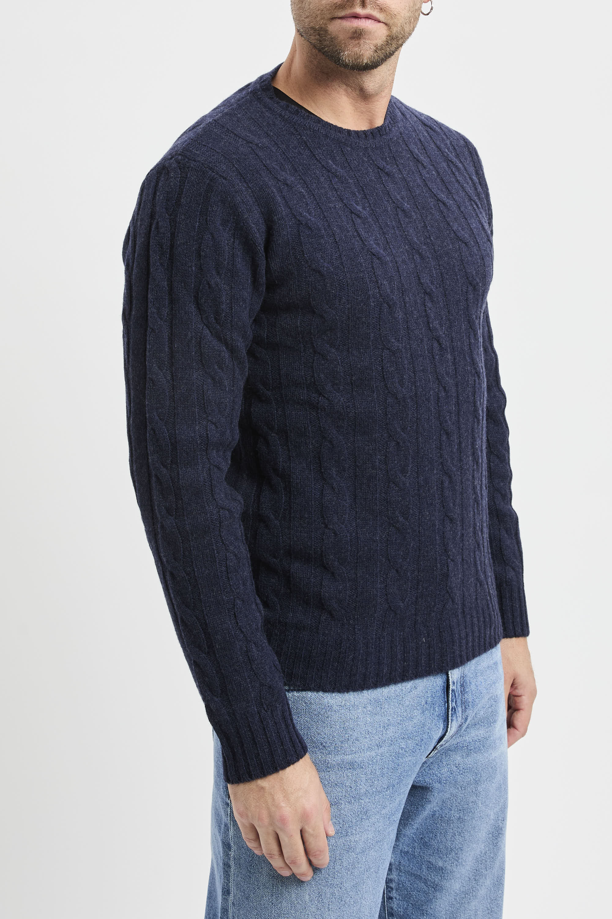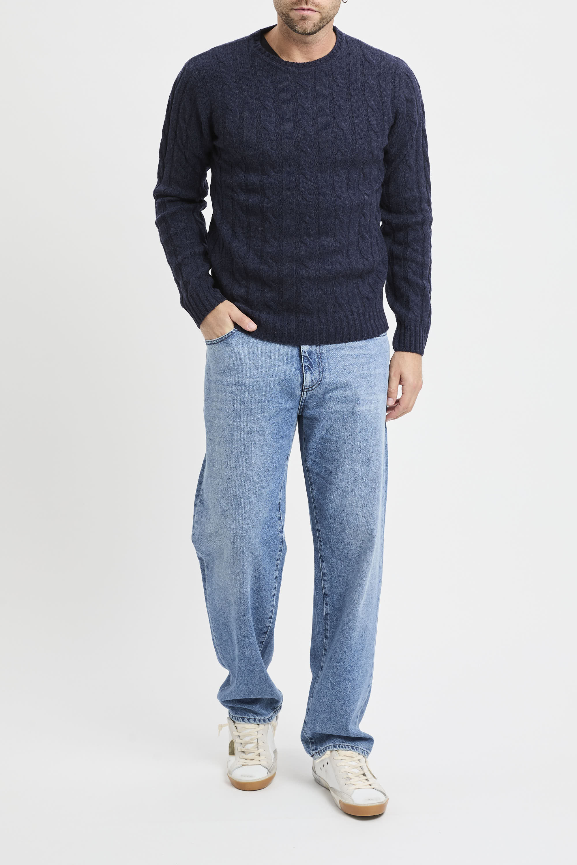 Maglione girocollo Daniele Fiesoli lavorato a costa treccia: una maglieria corposa e regolare che dona rilievo al punto e profondità al colore.