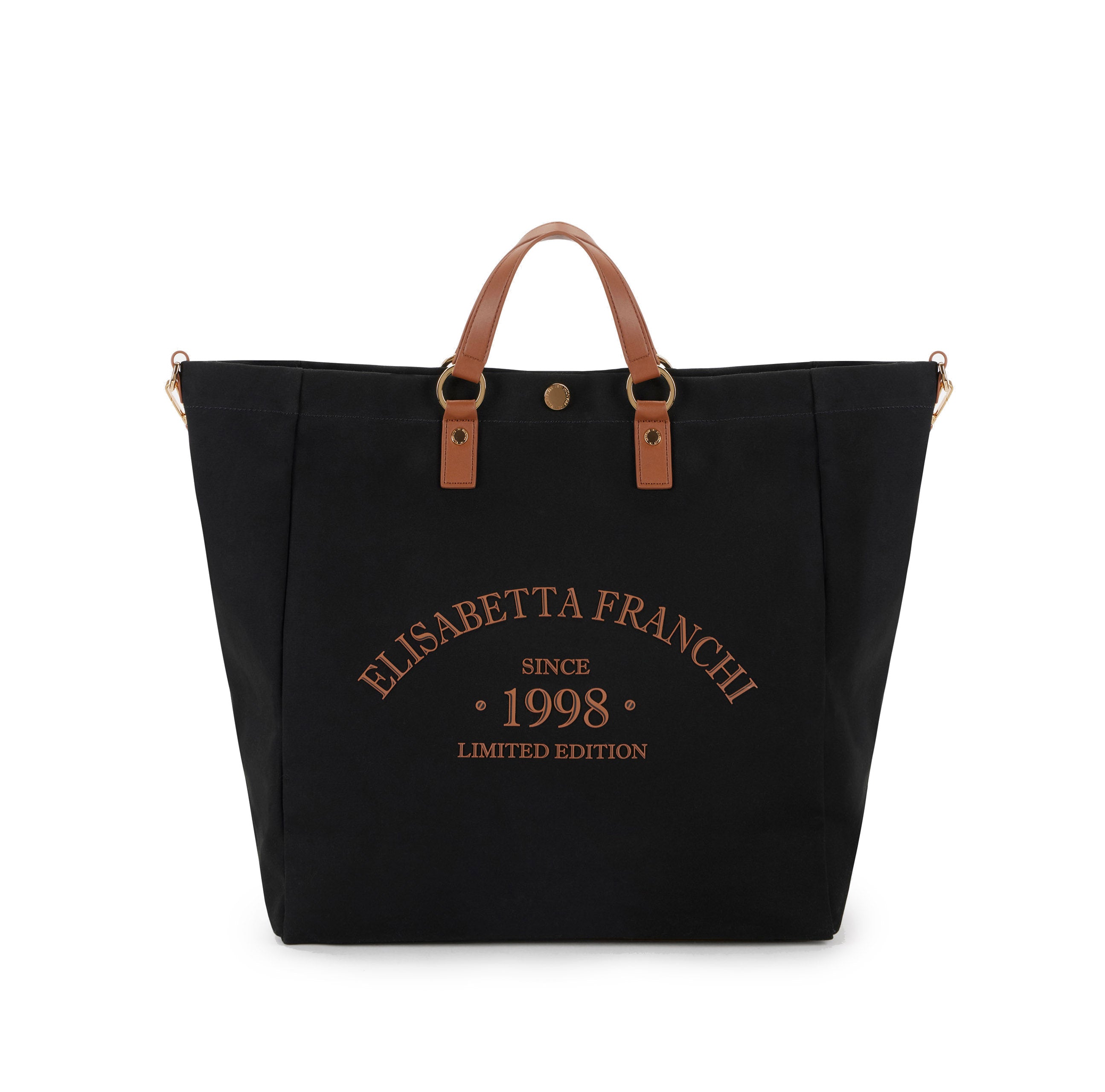 La tote Elisabetta Franchi BS14A62E2 è un accessorio capiente e contemporaneo, pensato per accompagnare la quotidianità con stile. Realizzata in canvas 100% cotone, si distingue per i dettagli in colore a contrasto in materiale effetto pelle color cuoio e per il logo con lettering frontale coordinato, elemento che ne definisce l’identità in modo deciso ma equilibrato.