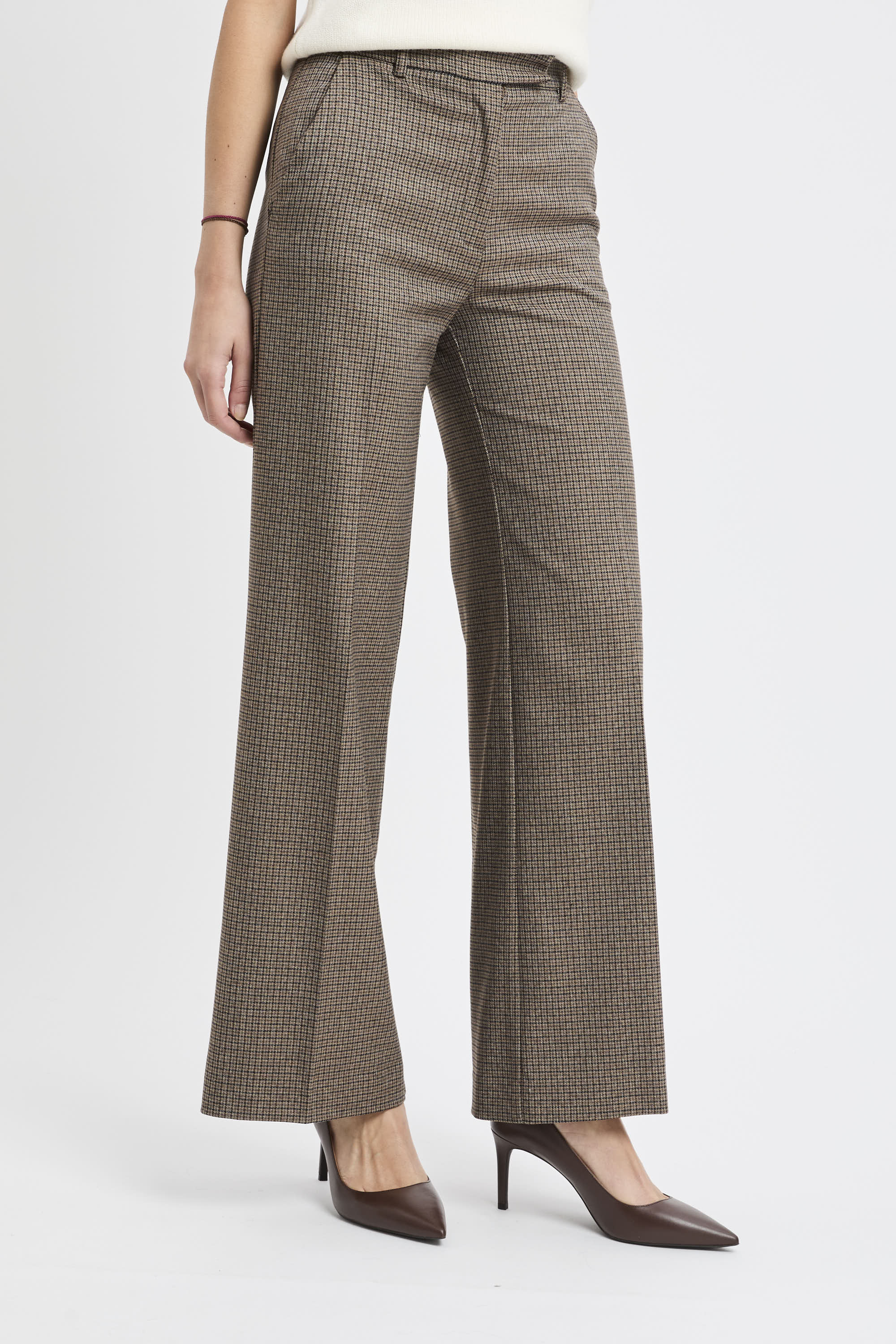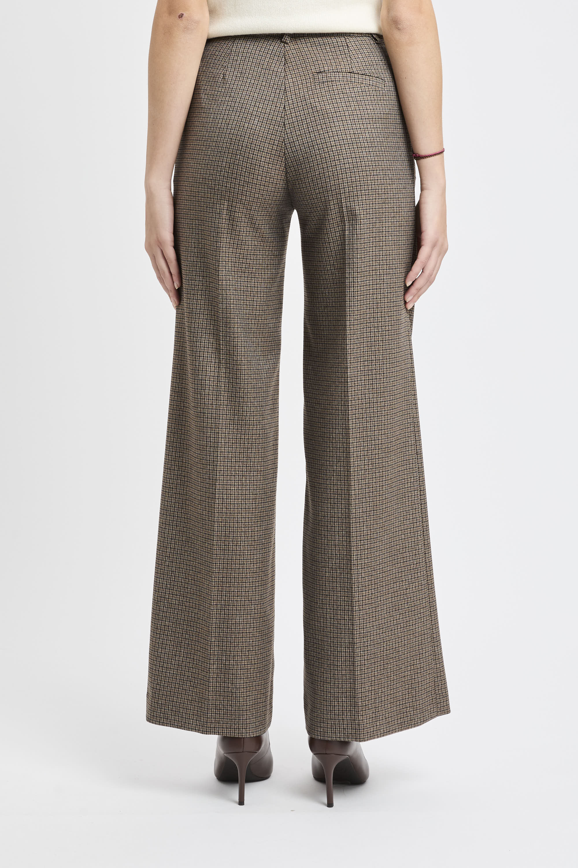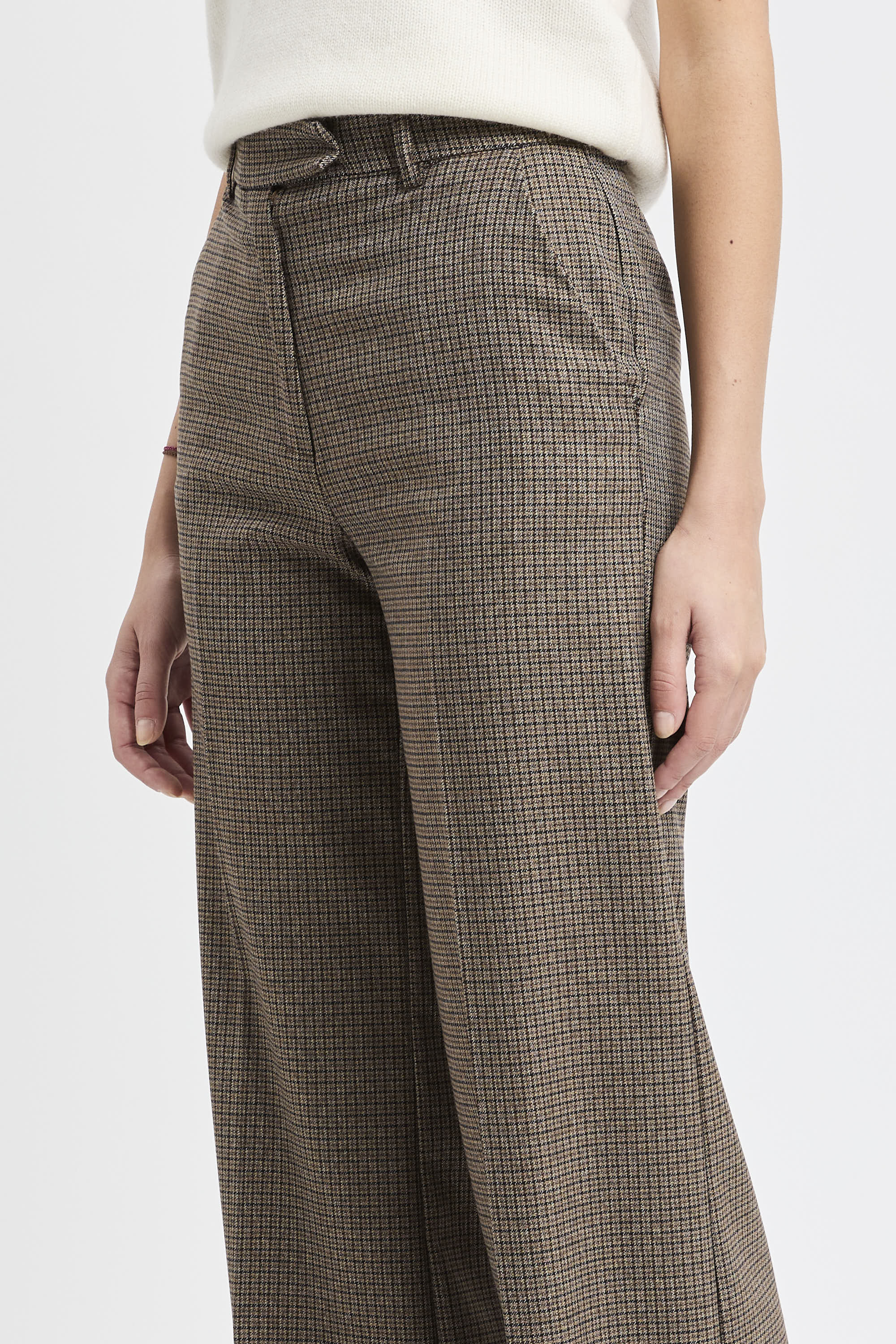 La costruzione sartoriale è pulita: tasche a filetto davanti, tasca ornamentale dietro, passanti per cintura e chiusura con bottone e zip mantengono il frontale ordinato.