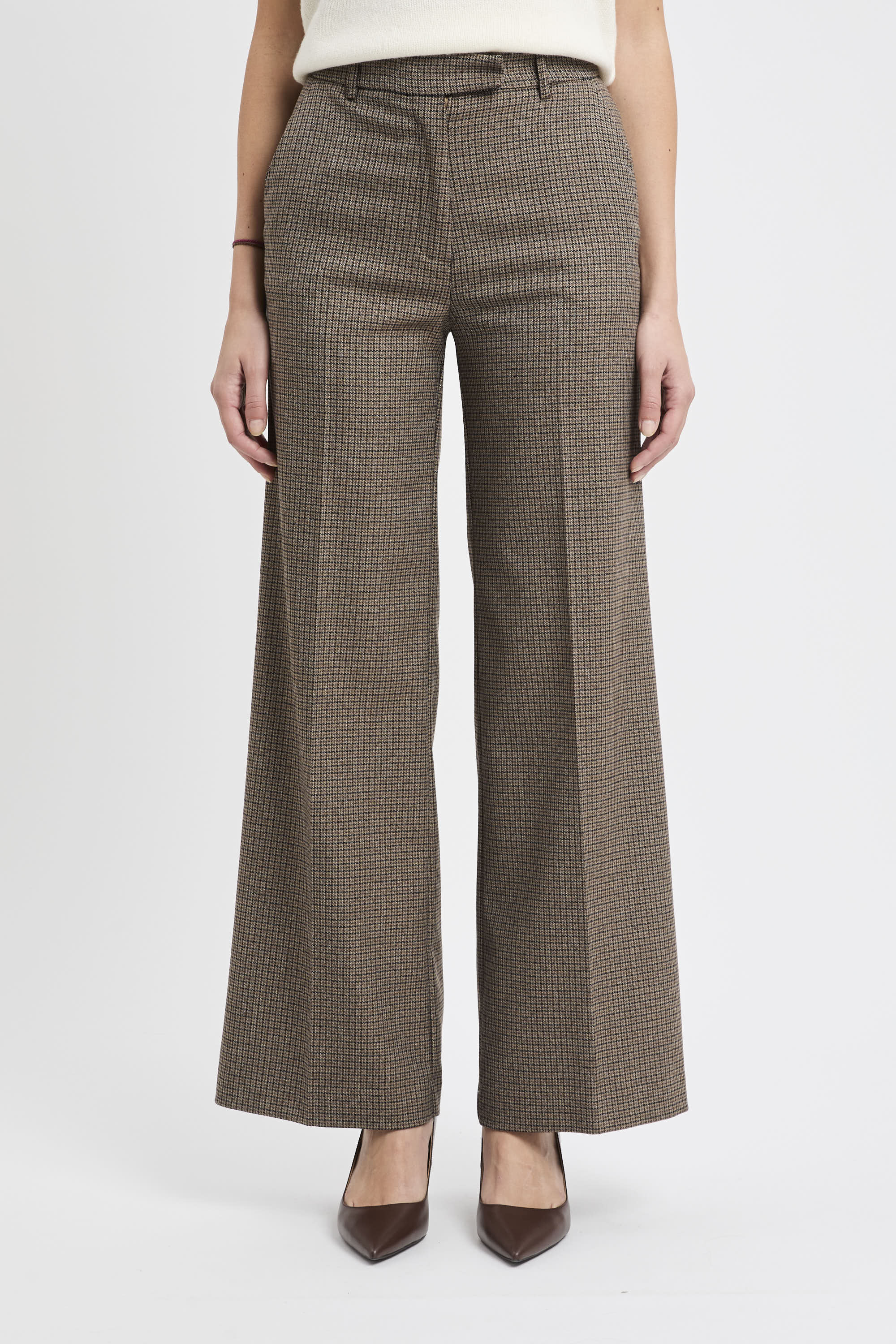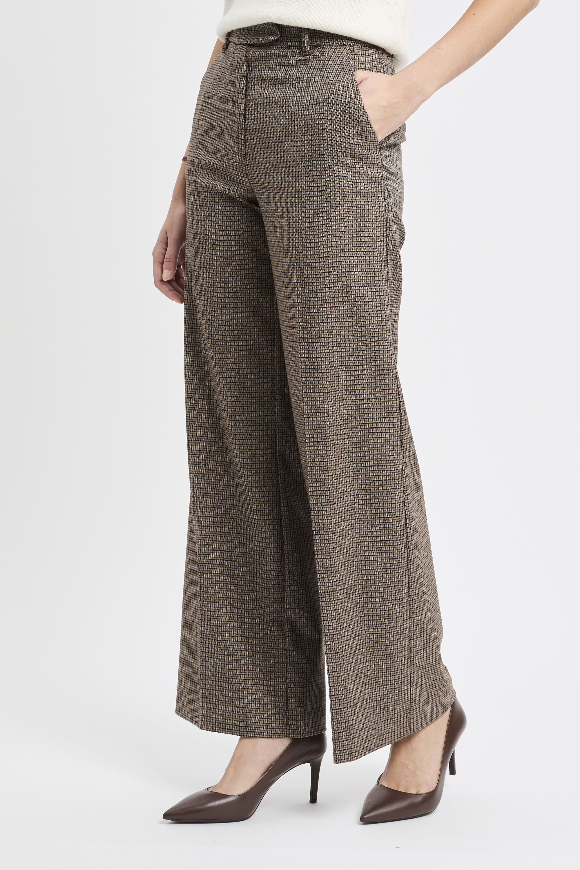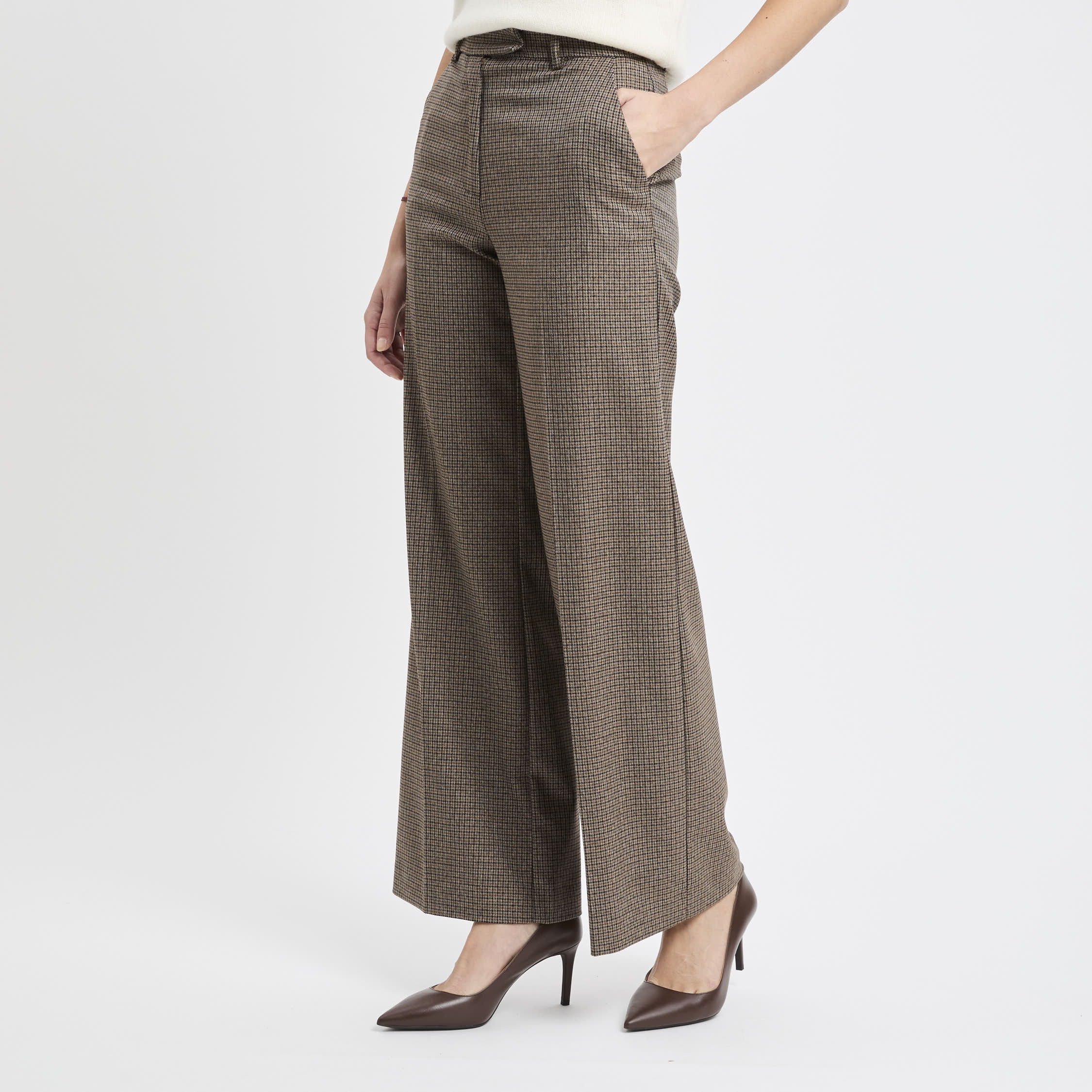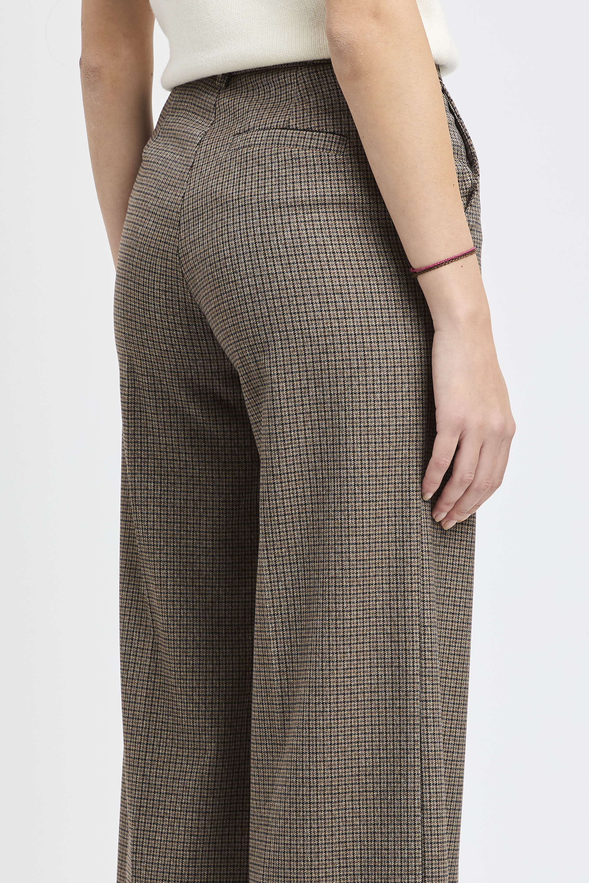La costruzione sartoriale è pulita: tasche a filetto davanti, tasca ornamentale dietro, passanti per cintura e chiusura con bottone e zip mantengono il frontale ordinato.