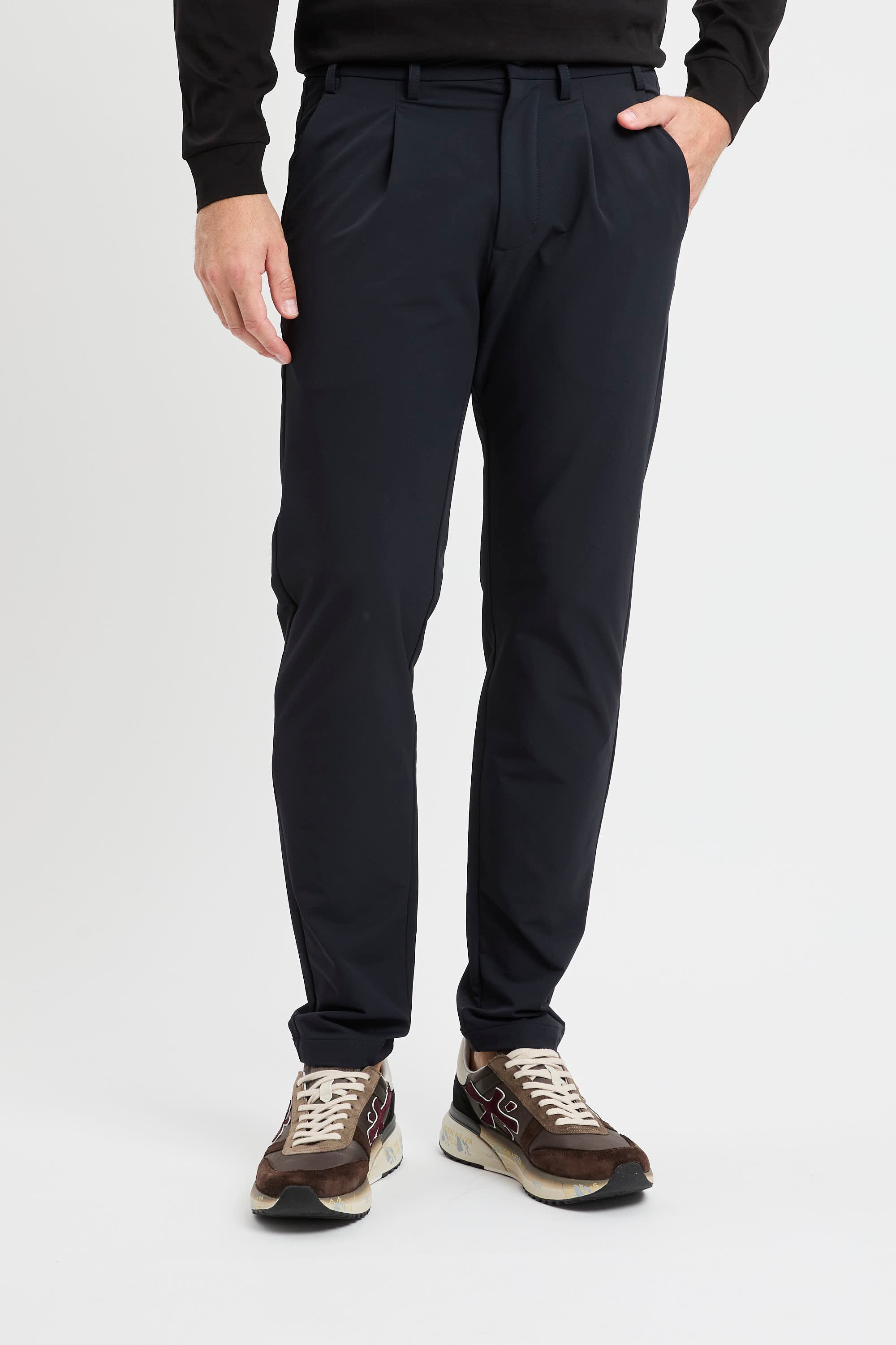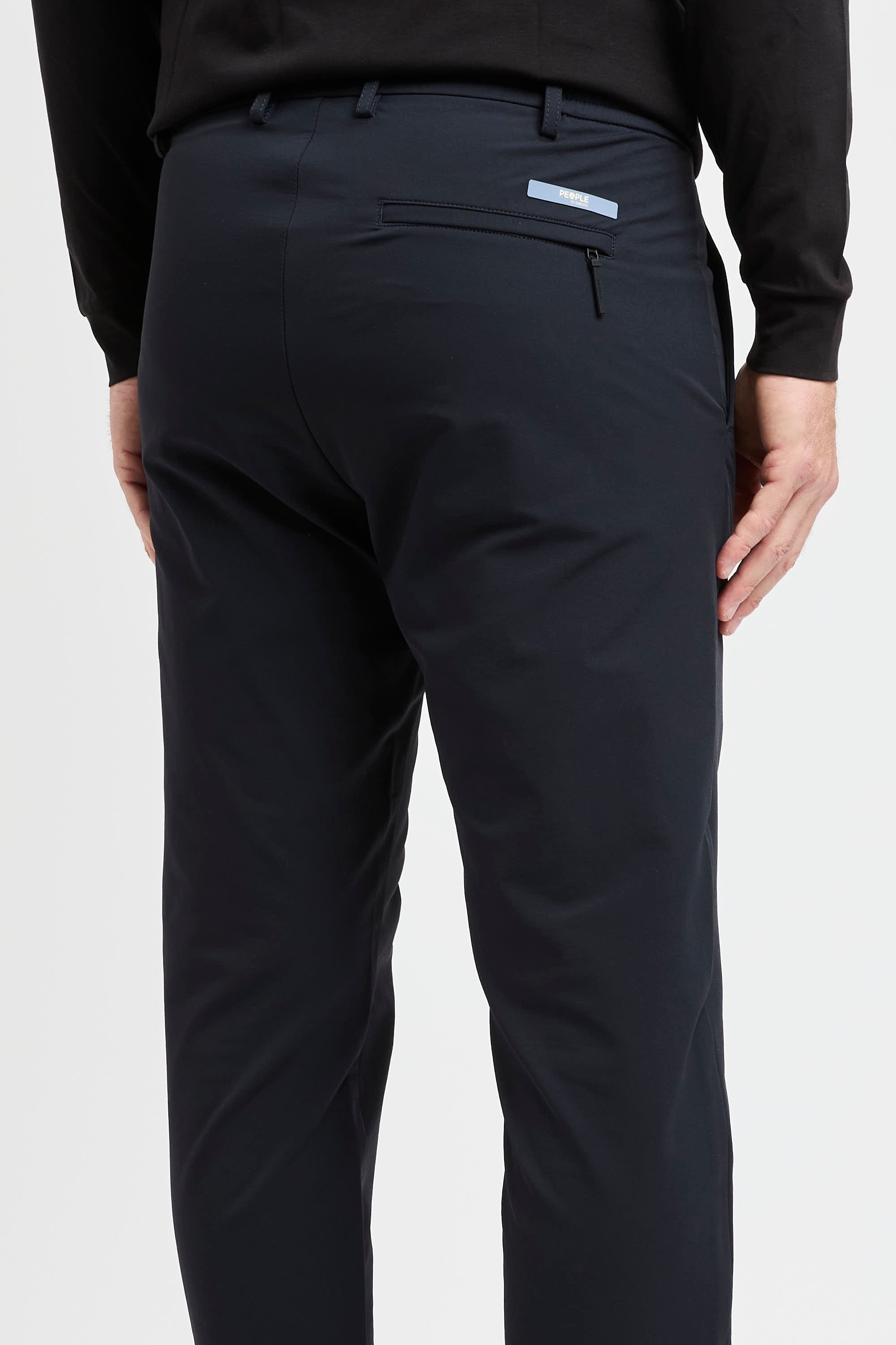 La vita è comoda grazie ai fianchi elasticizzati e ai passanti, con bottone a gancio personalizzato per una chiusura pulita. Il design pulito è arricchito da una pince frontale e da tasche America; all’interno, la fodera in ripstop delle tasche anteriori aumenta la durabilità.