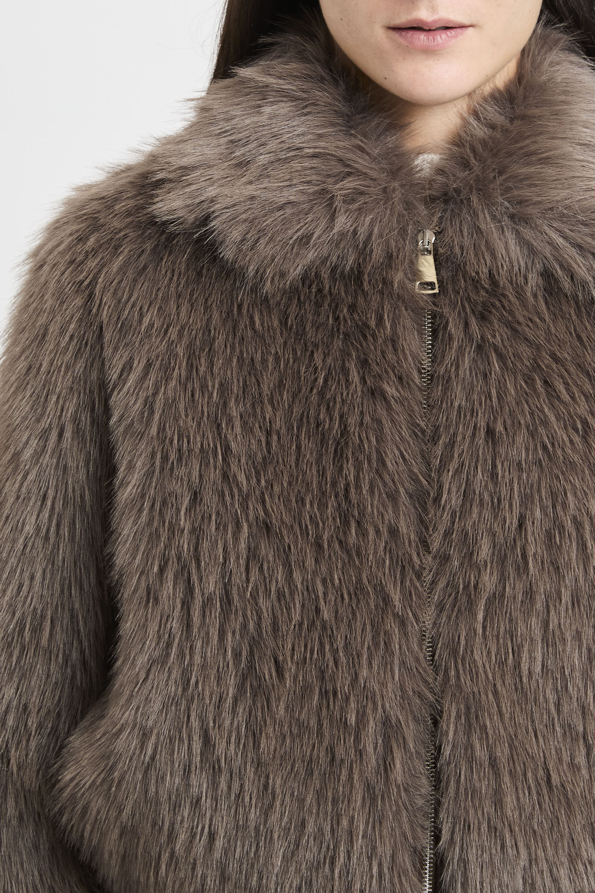 La doppia zip a due vie permette di modulare l’apertura e costruire look diversi, dal più avvolgente al più disinvolto.