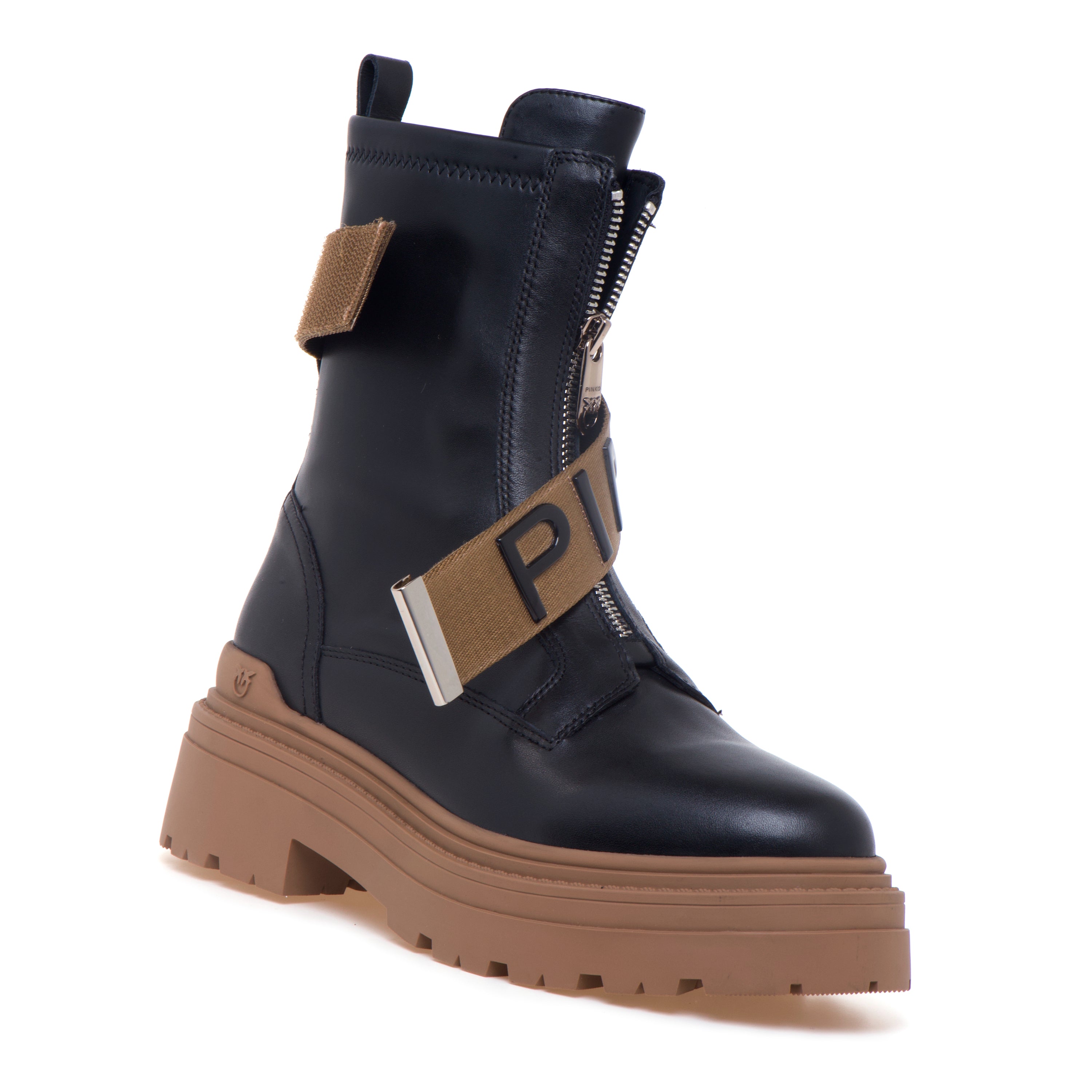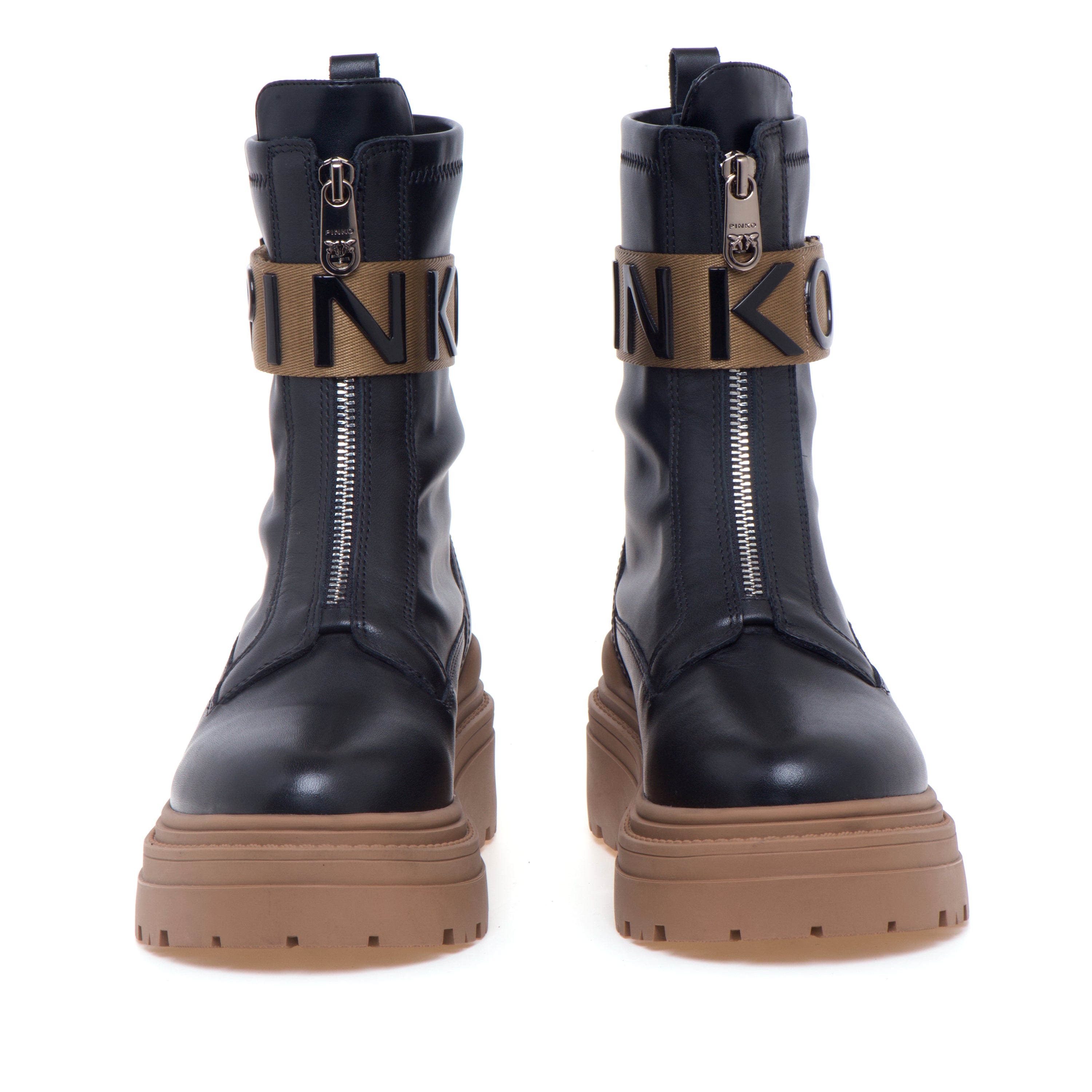 A firmare il design, la fascia in nastro tecnico con logo lettering PINKO: un dettaglio grafico che rende il modello subito riconoscibile. Moderni e versatili, questi anfibi sono perfetti per completare look casual e grintosi con un tocco contemporary.