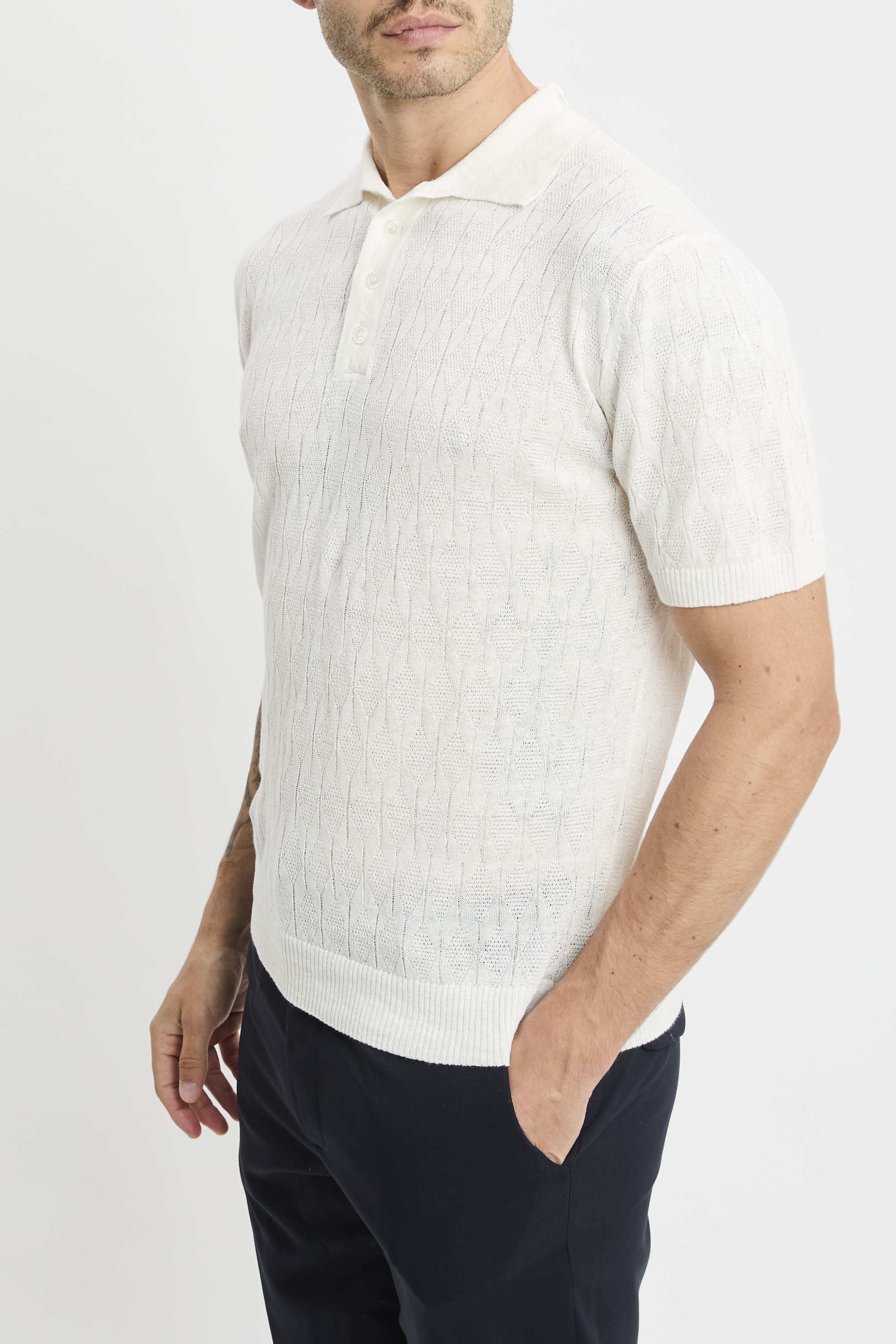 daniele fiesoli Polo manica corta Daniele Fiesoli in lino e cotone con trama rombi