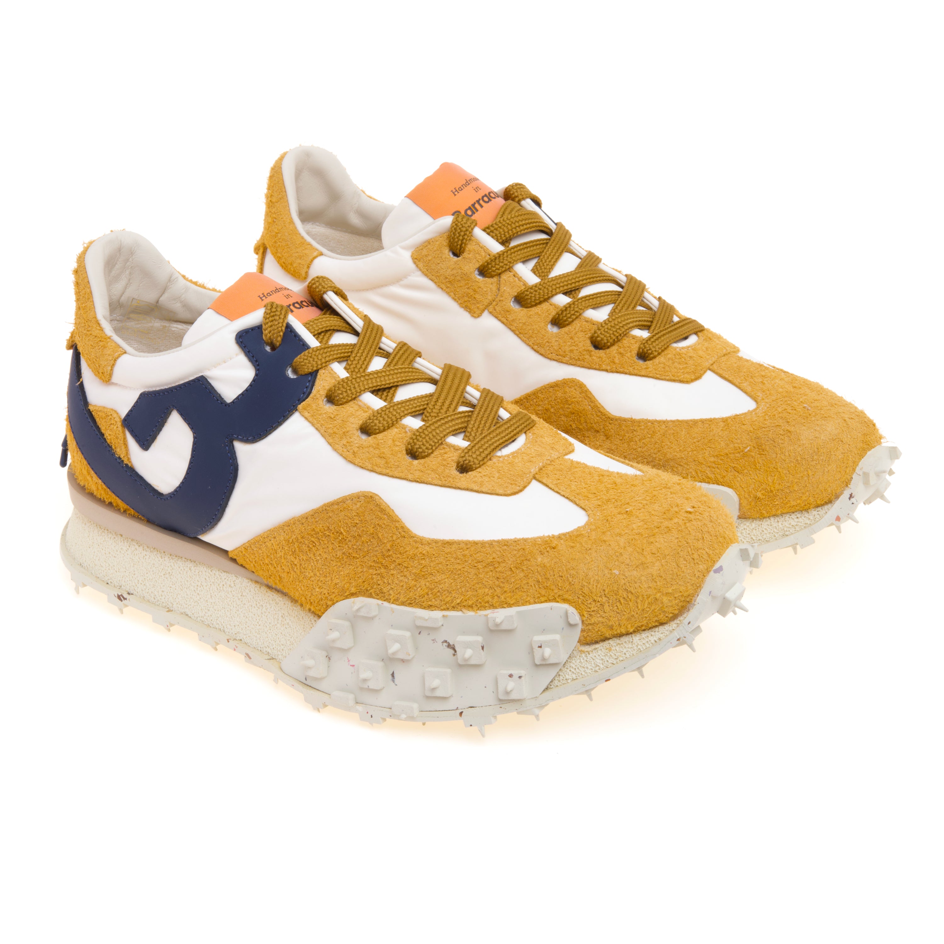 La tomaia combina camoscio e tessuto, creando un gioco materico dinamico che valorizza la silhouette e rende il modello versatile e facilmente abbinabile. L’iconica B laterale applicata in contrasto firma il design con un segno grafico distintivo, aggiungendo personalità senza eccessi. La suola in gomma Rubex, estremamente leggera e resistente, è progettata per garantire ammortizzazione e flessibilità grazie al battistrada con micro-punte che assicura un effetto cushioned ad ogni passo. All’interno, la fodera in pelle e cotone favorisce traspirabilità e comfort, mentre il sottopiede estraibile in pelle offre un appoggio stabile e personalizzabile per tutto l’arco della giornata. Realizzata artigianalmente in Italia, Impact Plus esprime al meglio la qualità costruttiva e l’attenzione al dettaglio che contraddistinguono il brand.