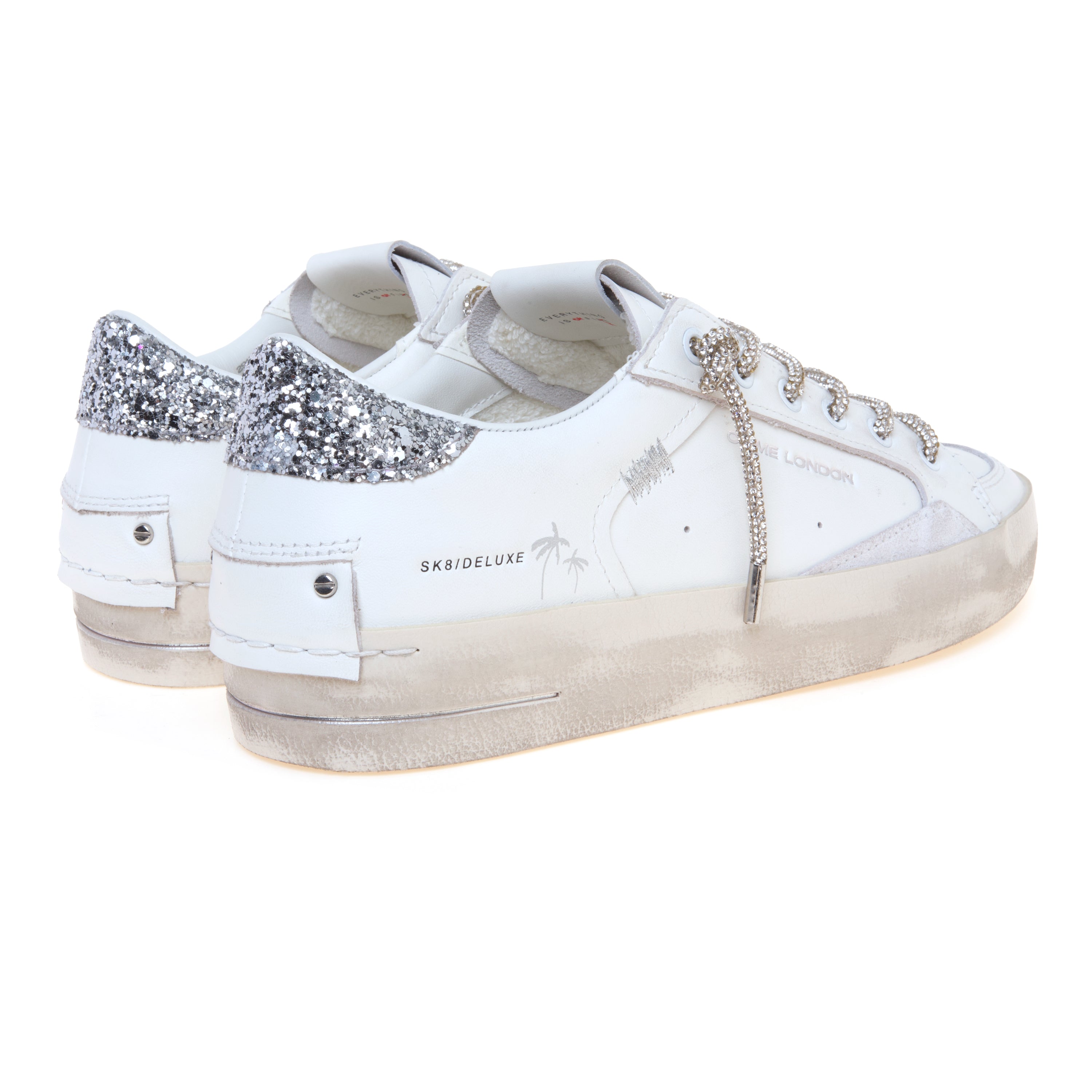 crime london Sneaker Crime London SK8 Deluxe in pelle con talloncino in glitter e lacci strass