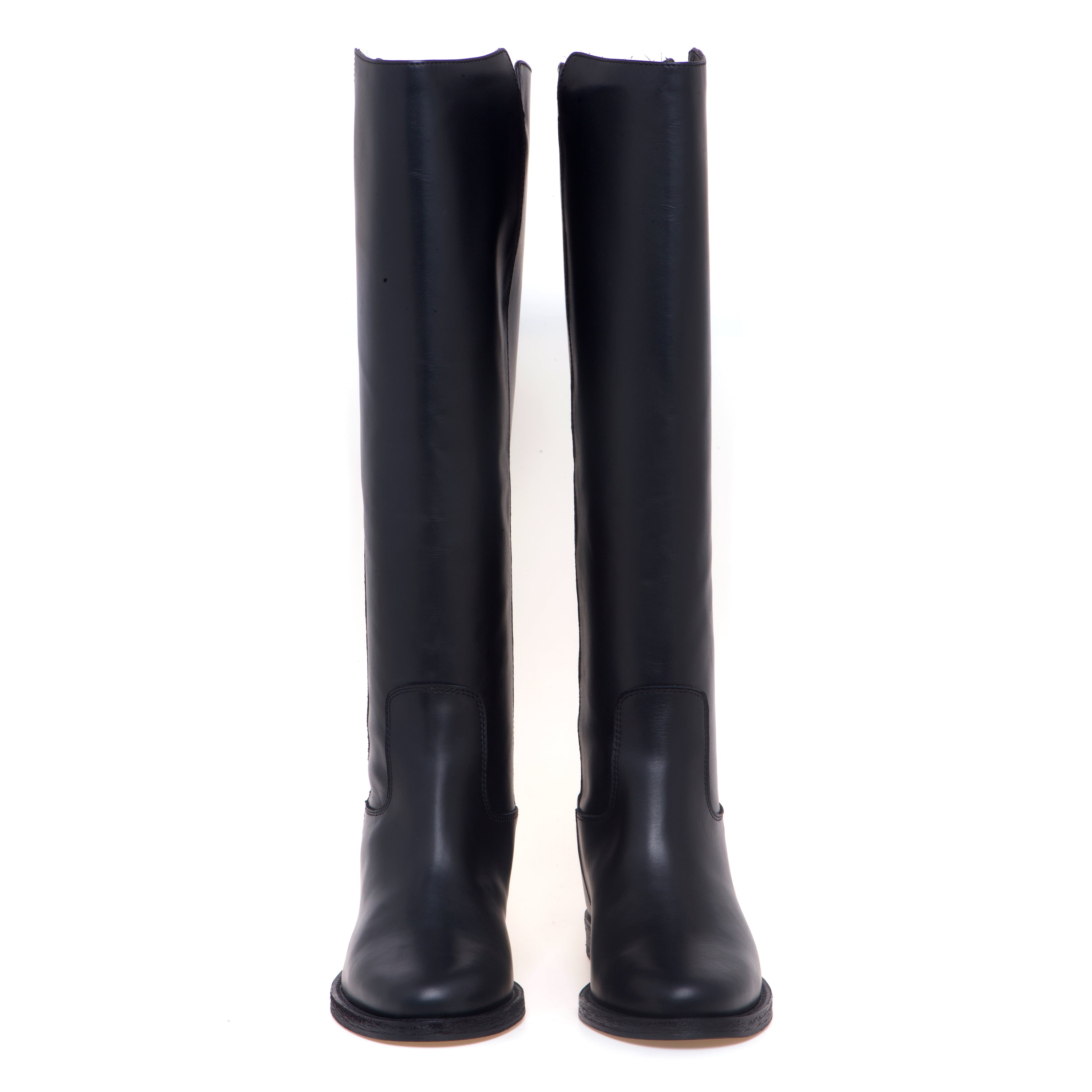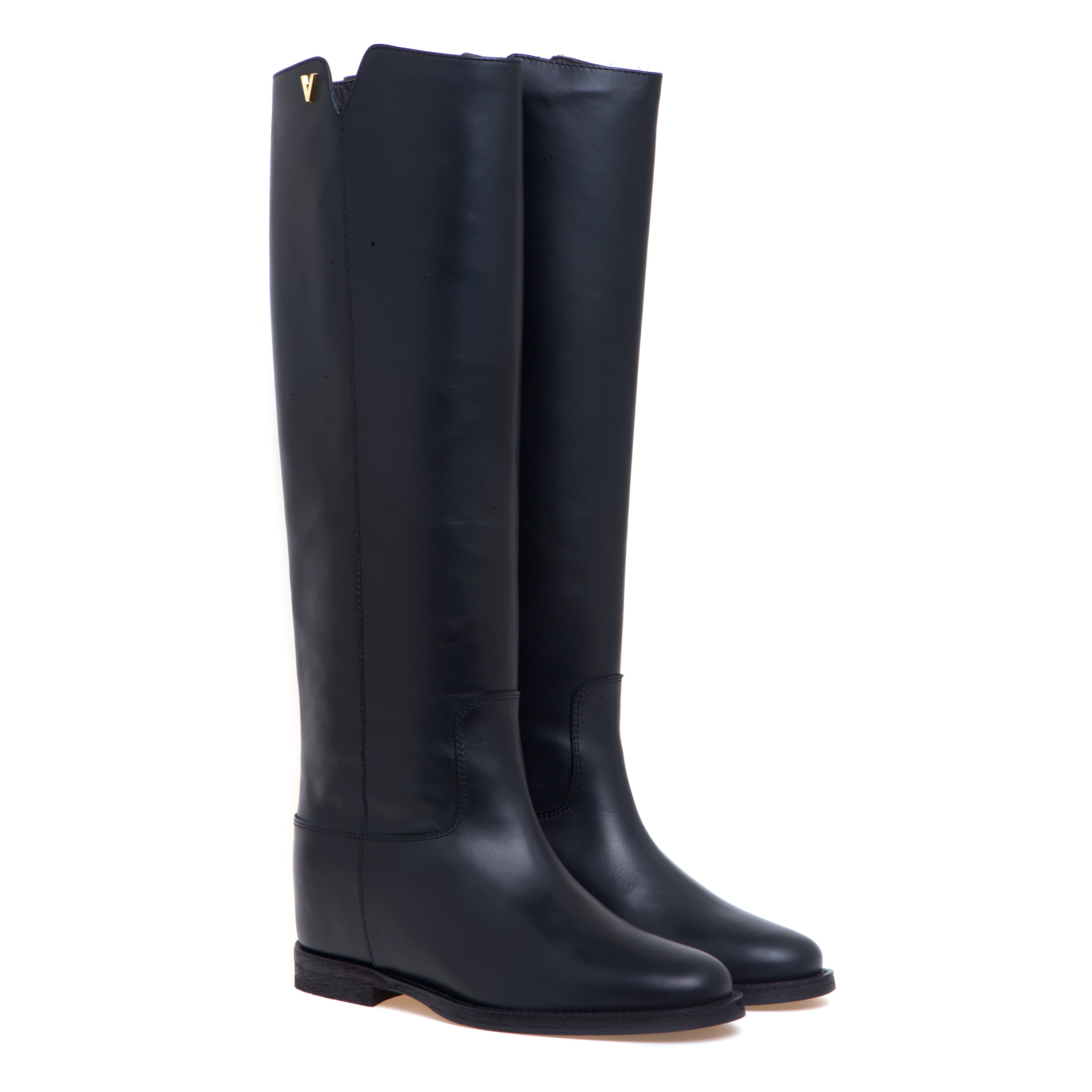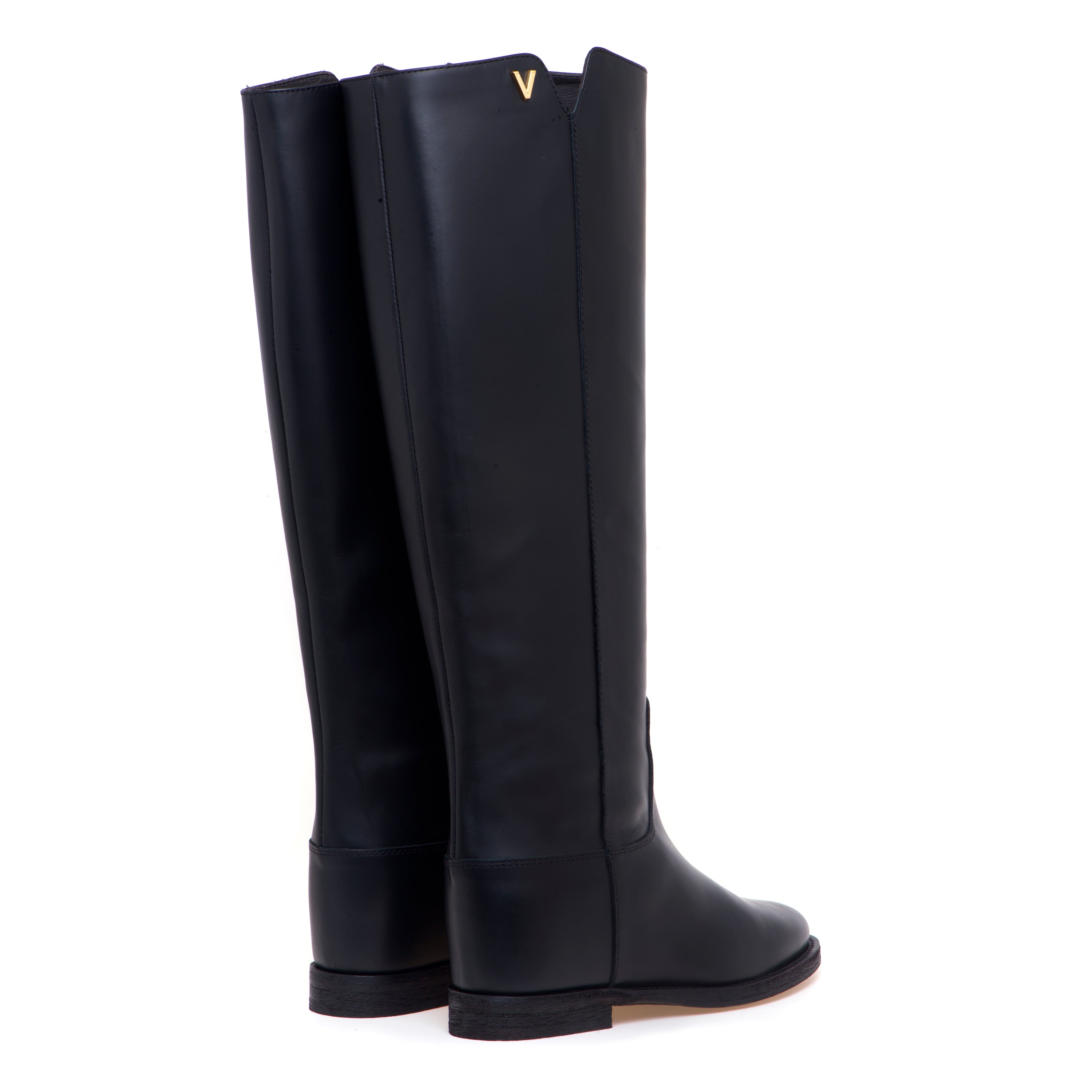 Stivale in pelle Via Roma 15 con zeppa interna e mini logo "V" gold