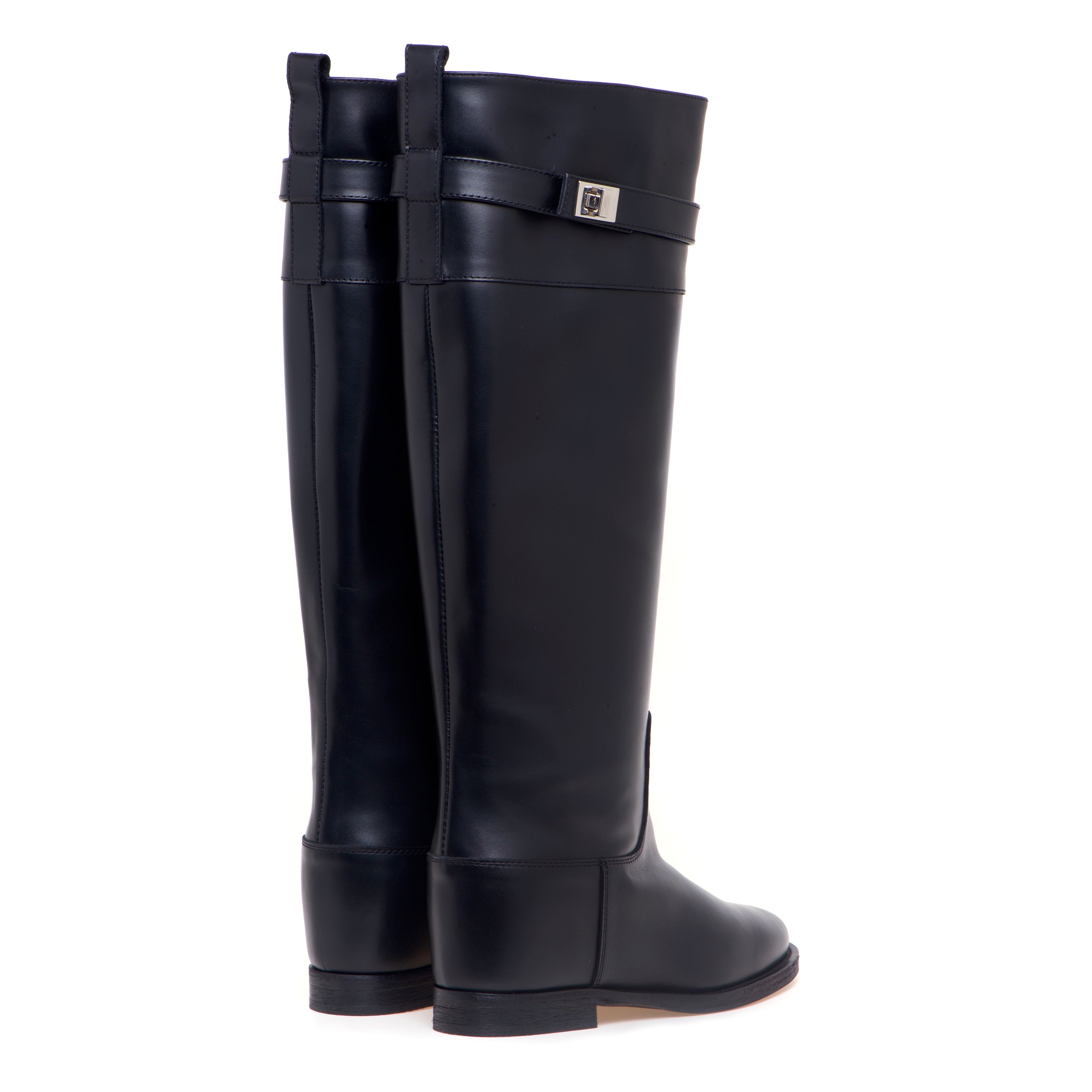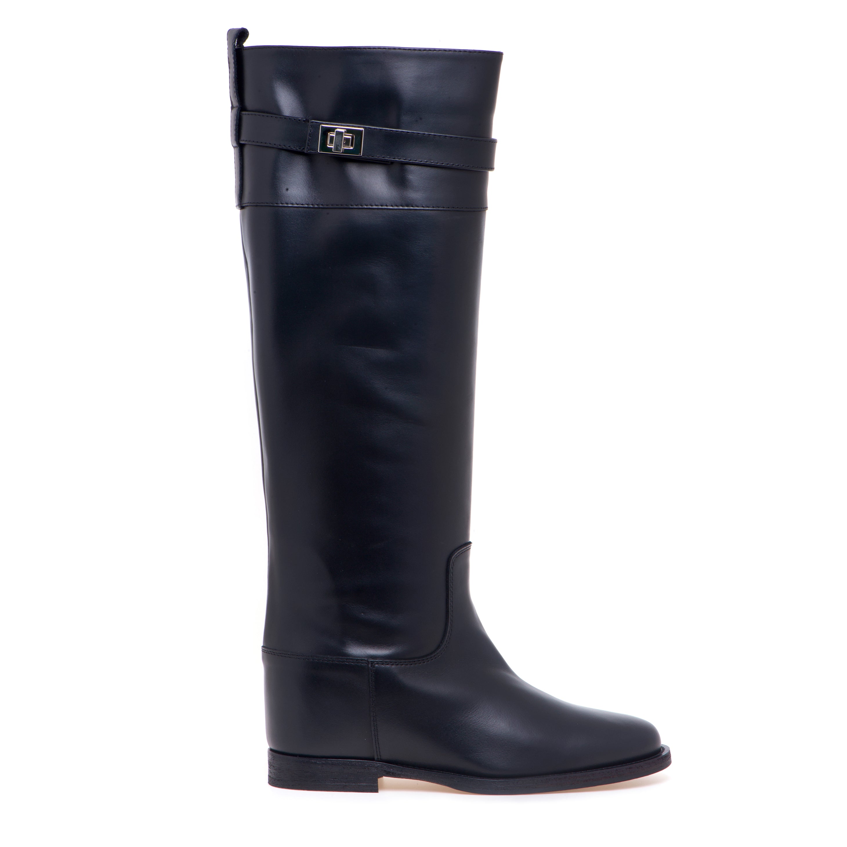 Stivale Via Roma 15 in pelle con zeppa interna, banda e accessorio lucchetto