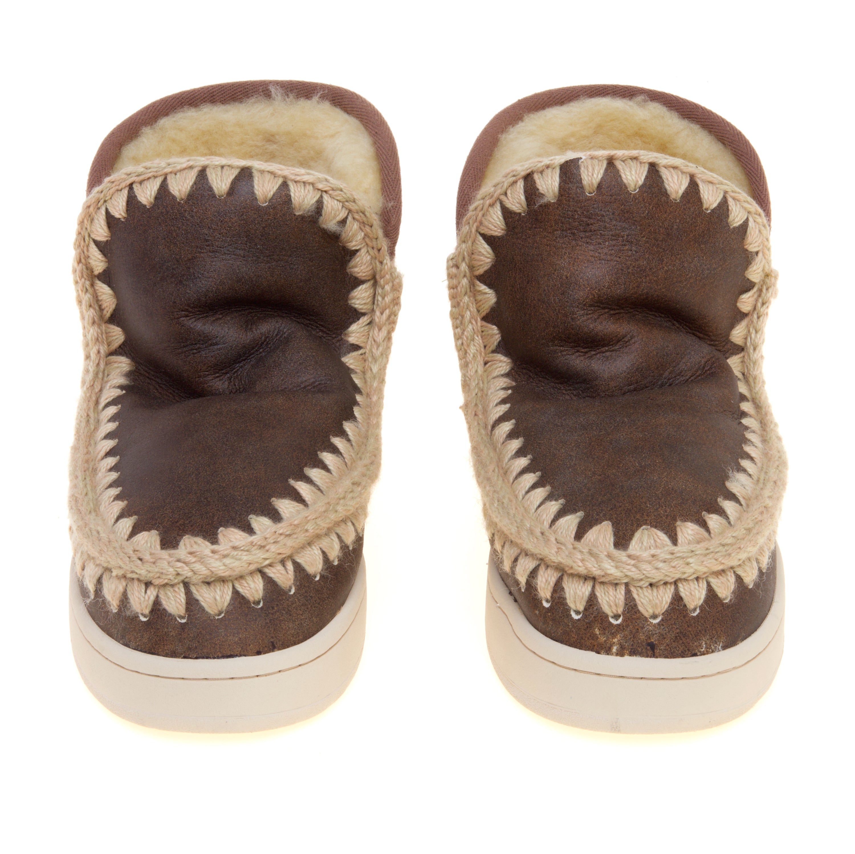 Realizzato a mano in pelle speciale effetto vintage e montone double face, abbina materiali naturali pregiati a una costruzione accurata, pensata per garantire massimo comfort e calore durante la stagione fredda.