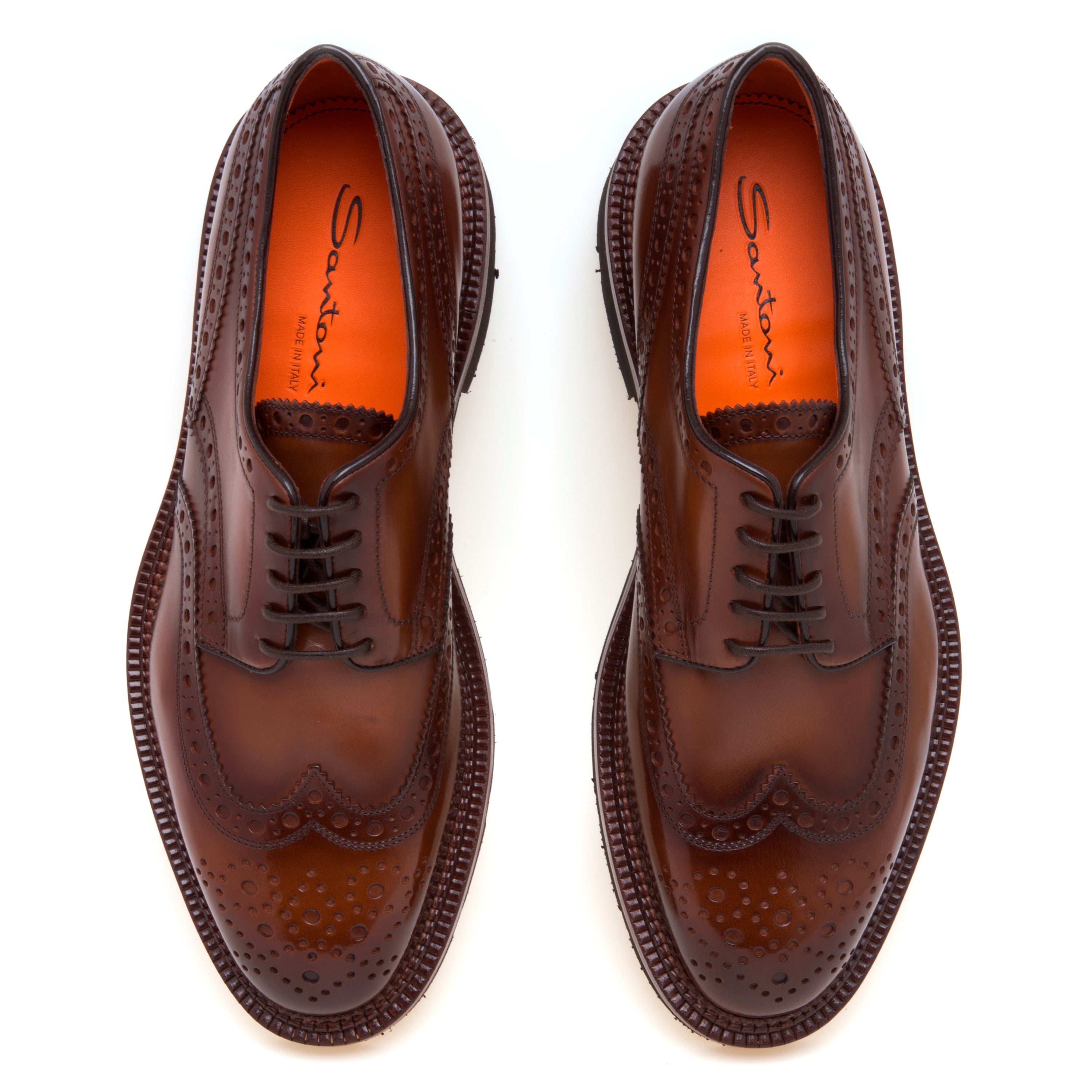 Questa versione di Santoni, realizzata in pelle anticata da look moderno ed accattivante, presenta una suola in cuoio con battistrada in gomma.