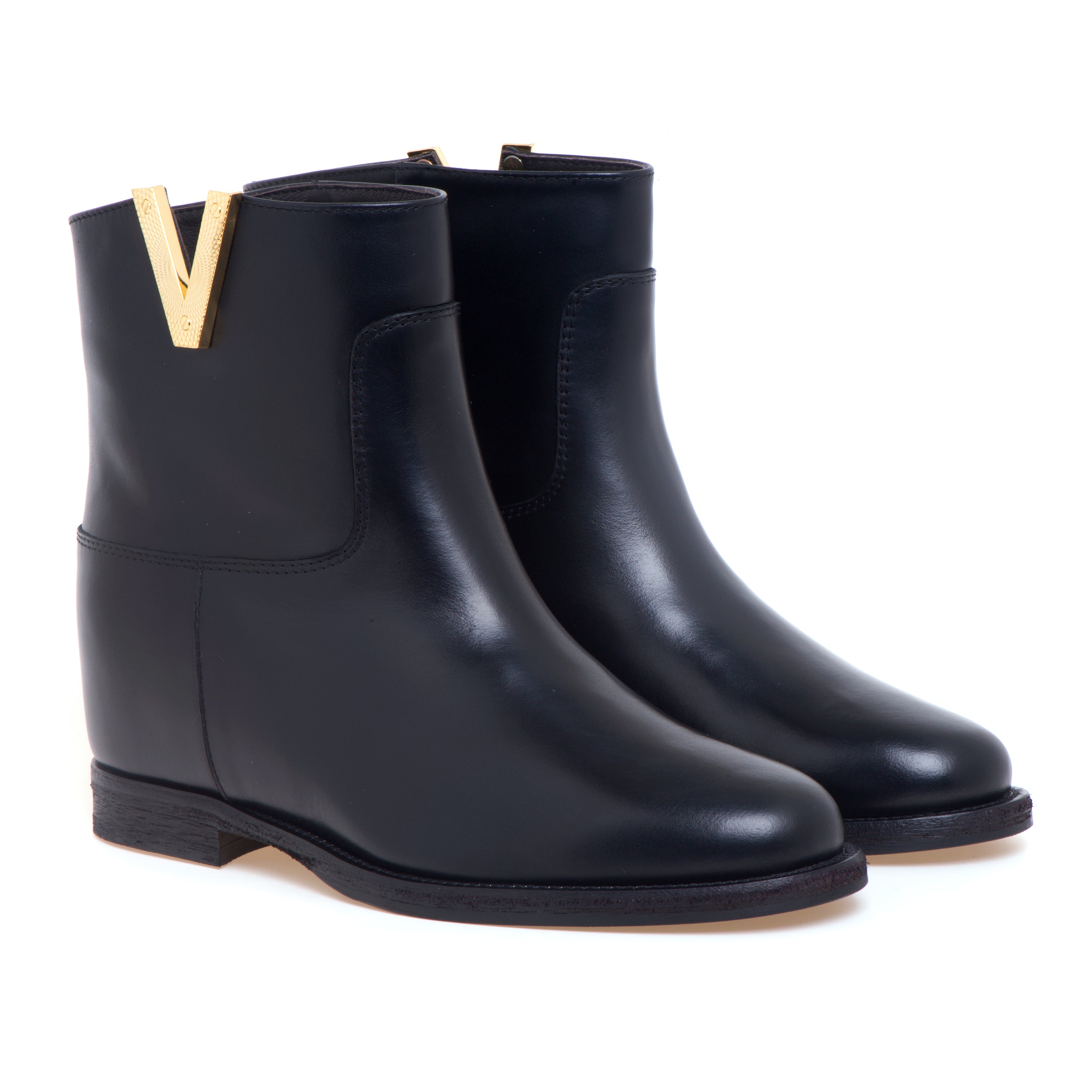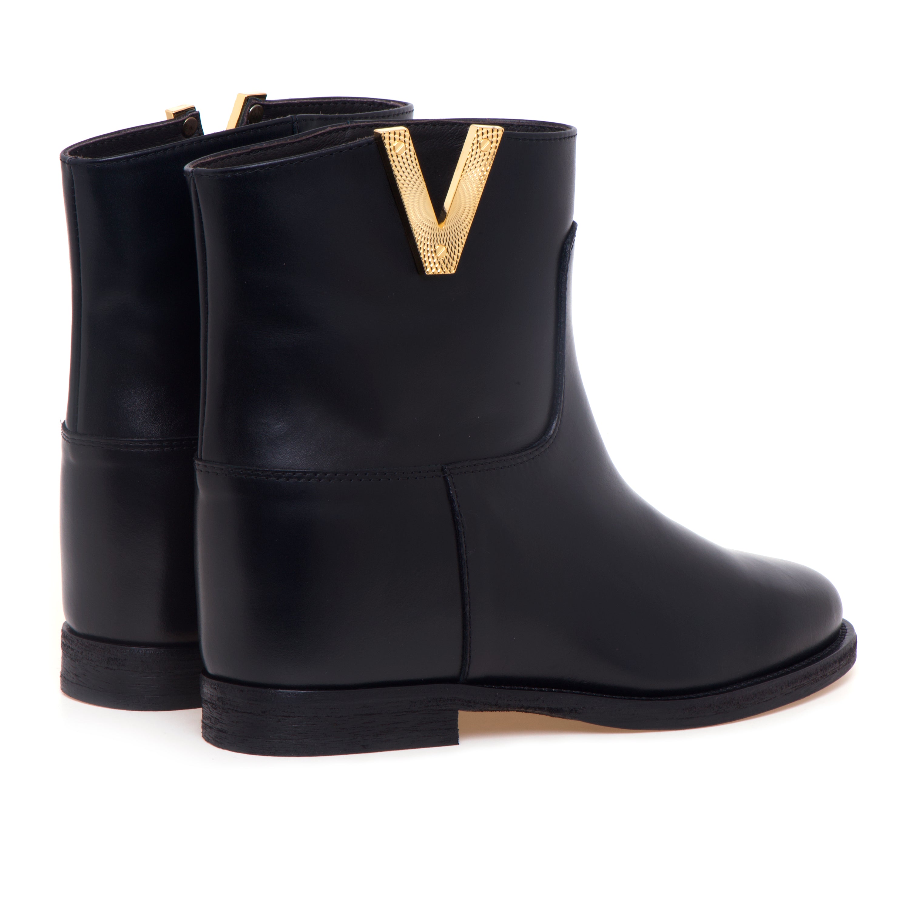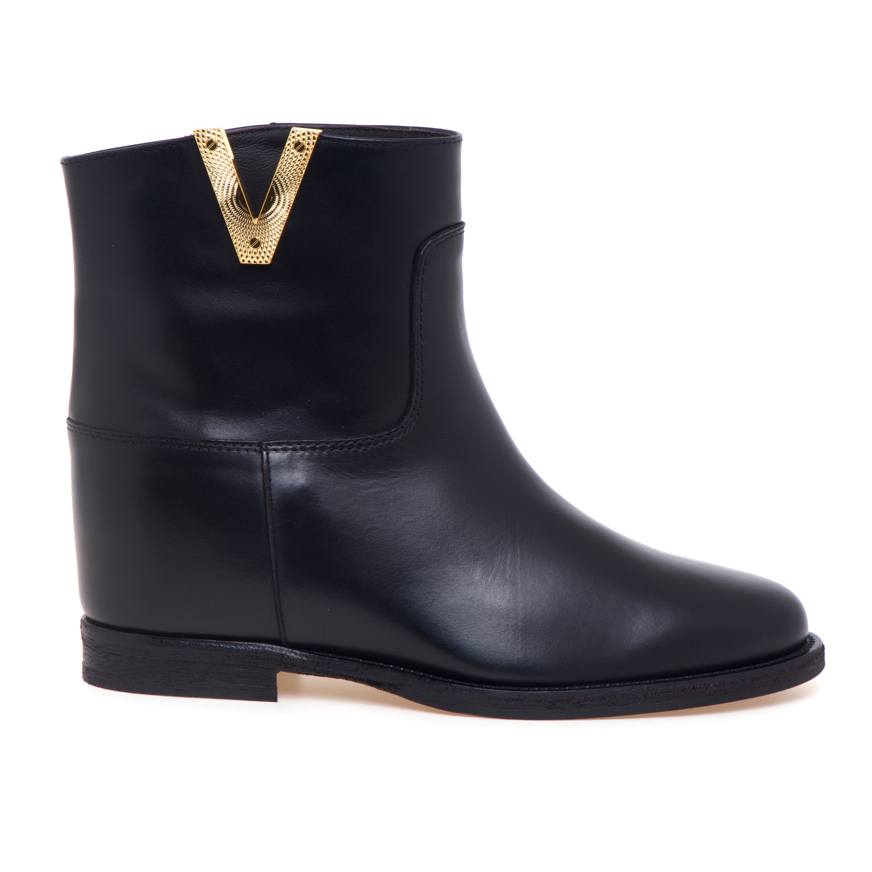 Tronchetto Via Roma 15 in pelle con zeppa interna e "V" diamante zigrinata